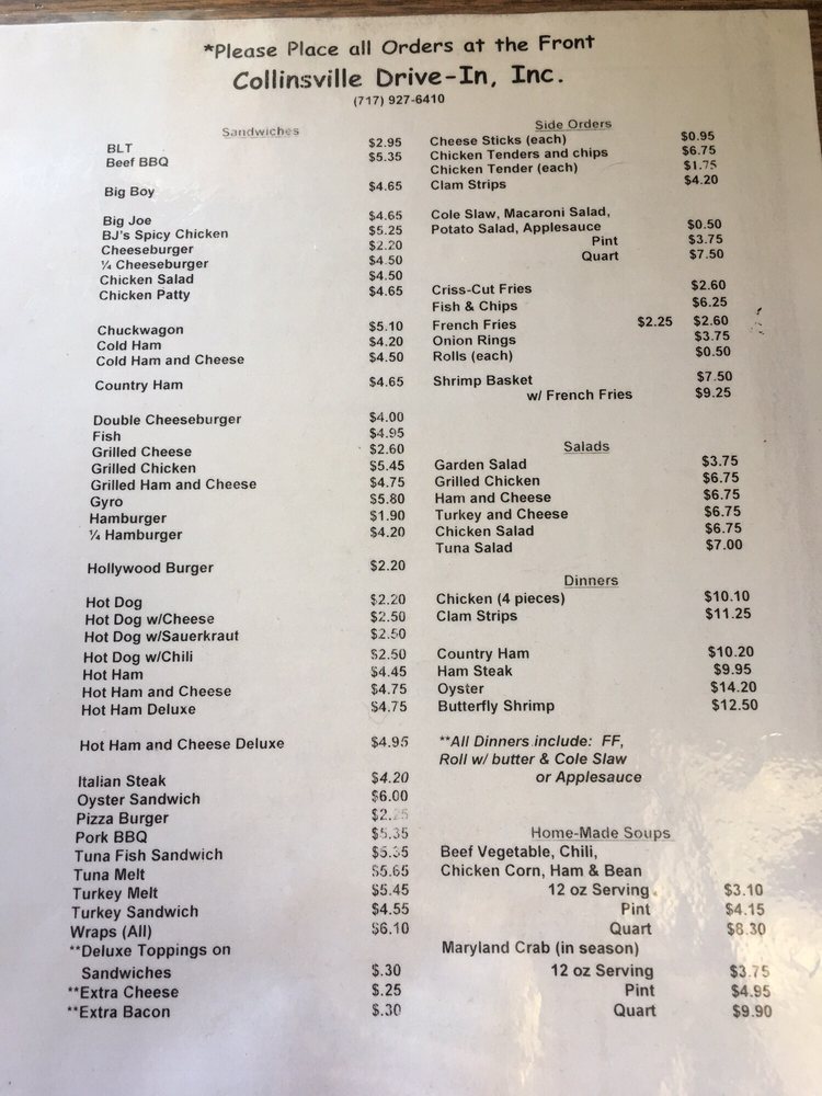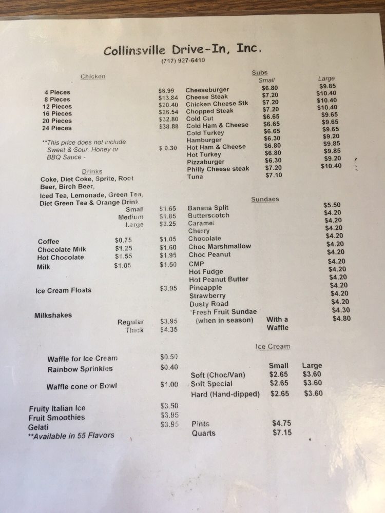 Introducing the iconic Collinsville Drive In located in Brogue, PA, known for its nostalgic charm and delicious burgers. This family-friendly spot offers a variety of amenities such as takeout, delivery, outdoor seating, and catering services. Customers rave about the Broasted Chicken, Chuckwagon sandwich, homemade Chicken Corn Soup, and delectable soft serve Ice Cream options. The multi-generational staff adds to the unique experience, with teens working summer jobs and providing friendly service. Despite potential wait times, the food quality and generous portions make it worth the visit. The Cheesesteak and burgers are standout items on the menu, with fresh ingredients and affordable prices. Collinsville Drive In embodies a classic drive-in dining experience with country vibes, perfect for slowing down and enjoying the moment. Don't miss out on the old-school charm and delicious offerings at this beloved establishment.